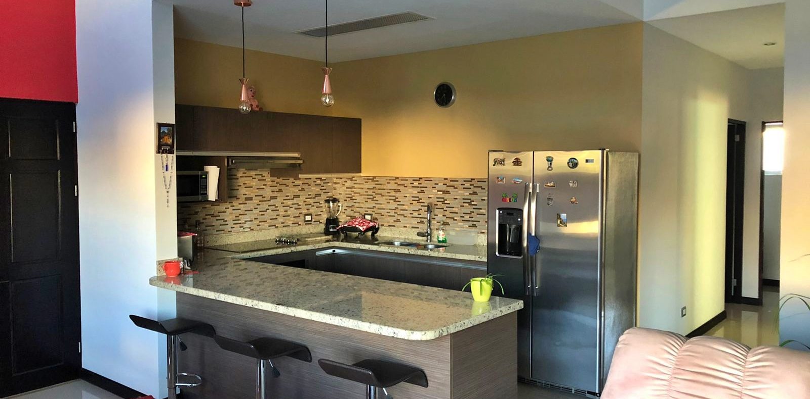 La cocina americana cuenta con un desayunador de sobre de granito, muebles con herrajes alemanes de cierre lento y grifería de lujo. El espacio se completa con una sala/comedor, cuarto de lavado y un balcón perfecto para disfrutar del aire fresco y las vistas al entorno.